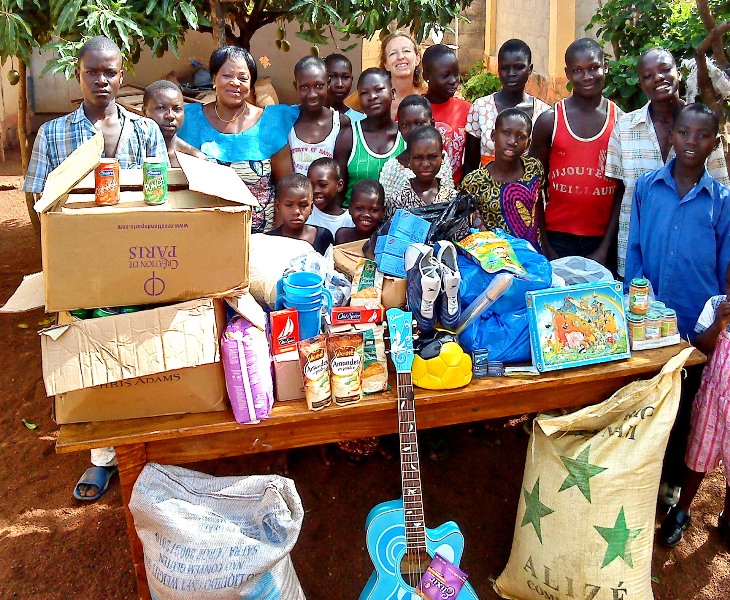Dons et distributions dans les orphelinats: Nourritures, vêtements, matériel solaire et éducatif, livres de bibliothèques, ordinateurs, couches et produits ménagers, etc. (LN)
